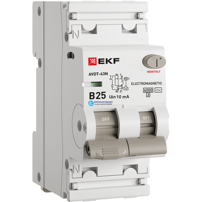 Выключатель автоматический дифференциальный АВДТ-63N 1P+N 25А 10мА (AC) эл-мех 6кА PROXIMA, код D63N26M25B10, производитель EKF