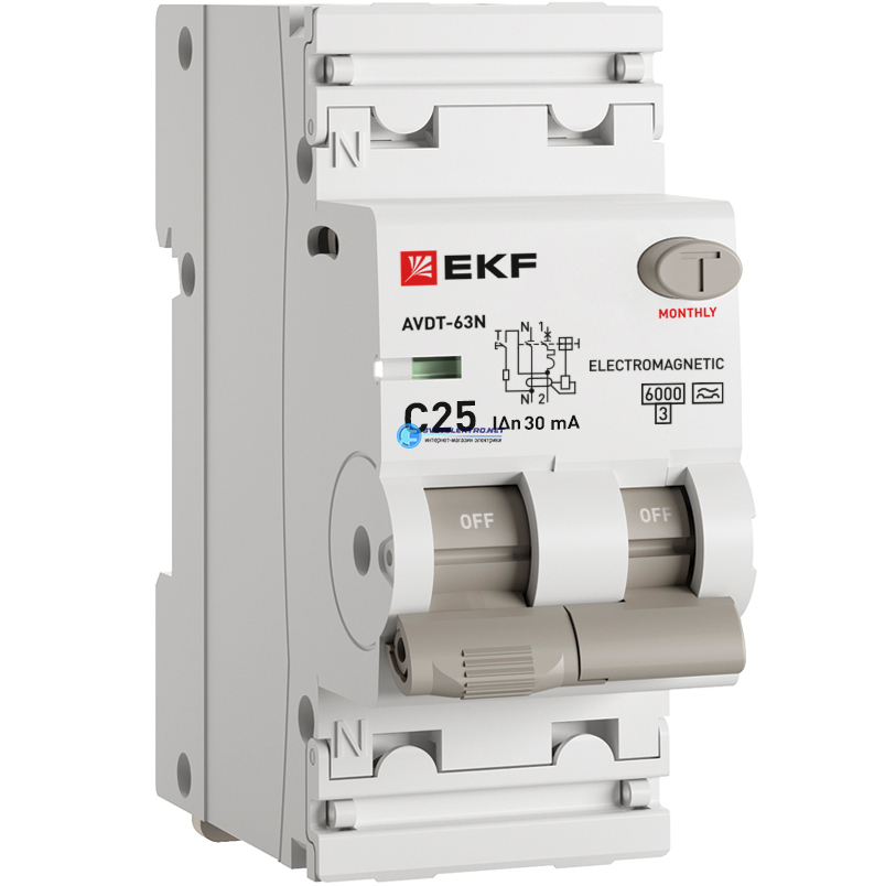 Выключатель автоматический дифференциальный АВДТ-63N 1P+N 25А 30мА эл-мех 6кА, код D63N26MA25C30, производитель EKF