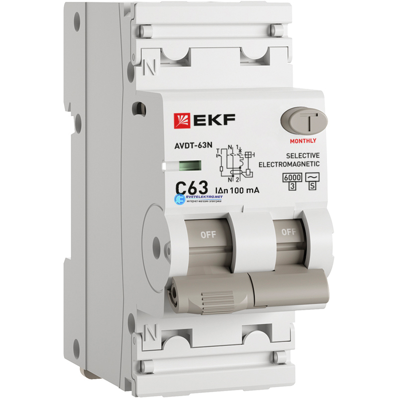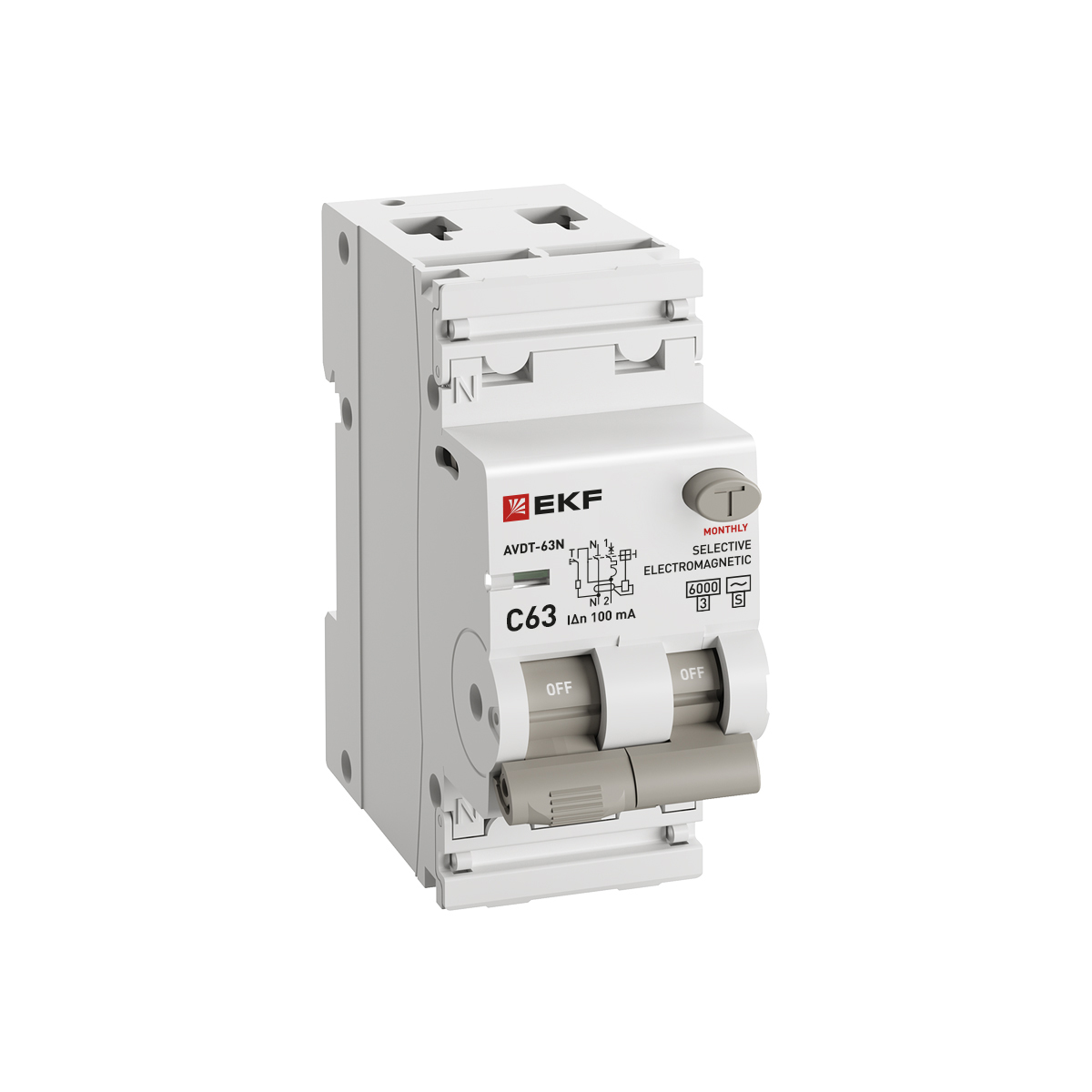 Выключатель автоматический дифференциальный АВДТ-63N 1P+N 63А 100мА эл-мех 6кА PROXIMA, код D63N26MS63C100, производитель EKF