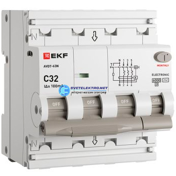 Автоматический выключатель дифференциального тока АВДТ-63N 3P+N 32А 100мА характеристика тип электронный 6кА PROXIMA, код D63N46E32C100, производитель EKF