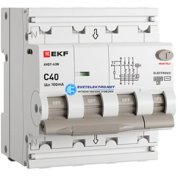 Автоматический выключатель дифференциального тока АВДТ-63N 3P+N 40А 100мА характеристика тип электронный 6кА PROXIMA, код D63N46E40C100, производитель EKF