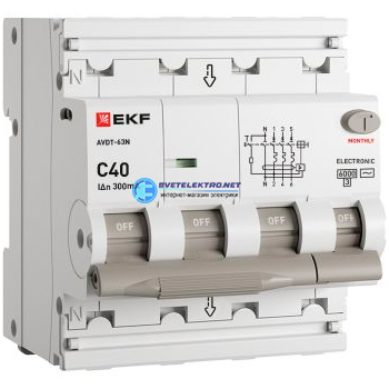 Автоматический выключатель дифференциального тока АВДТ-63N 3P+N 40А 300мА характеристика тип электронный 6кА PROXIMA, код D63N46E40C300, производитель EKF