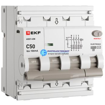 Автоматический выключатель дифференциального тока АВДТ-63N 3P+N 50А 100мА характеристика тип электронный 6кА PROXIMA, код D63N46E50C100, производитель EKF