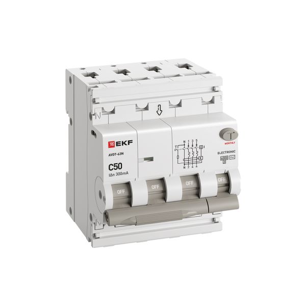 Автоматический выключатель дифференциального тока АВДТ-63N 3P+N 50А 300мА характеристика тип электронный 6кА PROXIMA, код D63N46E50C300, производитель EKF