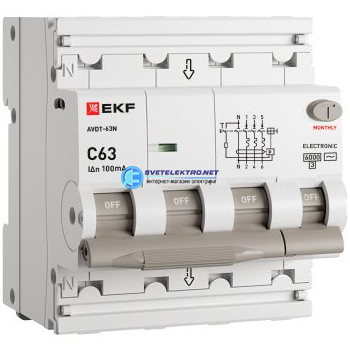 Автоматический выключатель дифференциального тока АВДТ-63N 3P+N 63А 100мА характеристика тип электронный 6кА PROXIMA, код D63N46E63C100, производитель EKF