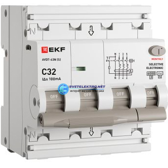Автоматический выключатель дифференциального тока селективный АВДТ-63N 3P+N 32А 100мА характеристика тип электронный 6кА PROXIMA, код D63N46ES32C100, производитель EKF