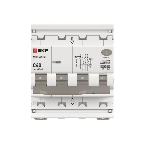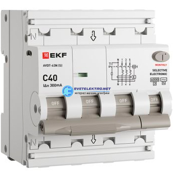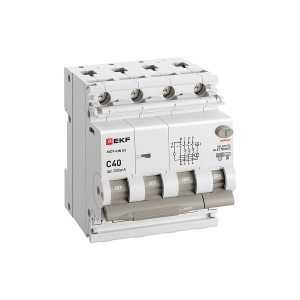 Автоматический выключатель дифференциального тока селективный АВДТ-63N 3P+N 40А 300мА характеристика тип электронный 6кА PROXIMA, код D63N46ES40C300, производитель EKF