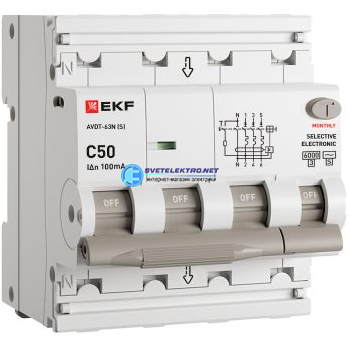 Выключатель автоматический дифференциального тока 3P+N 50А 100мА AC эл АВДТ-63N PROXIMA, код D63N46ES50C100, производитель EKF