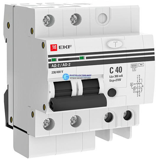 Дифференциальный автомат АД-2 40А/300мА (хар. C, AC, электронный, защита 270В) 6кА PROxima, код DA2-6-40-300-pro, производитель EKF