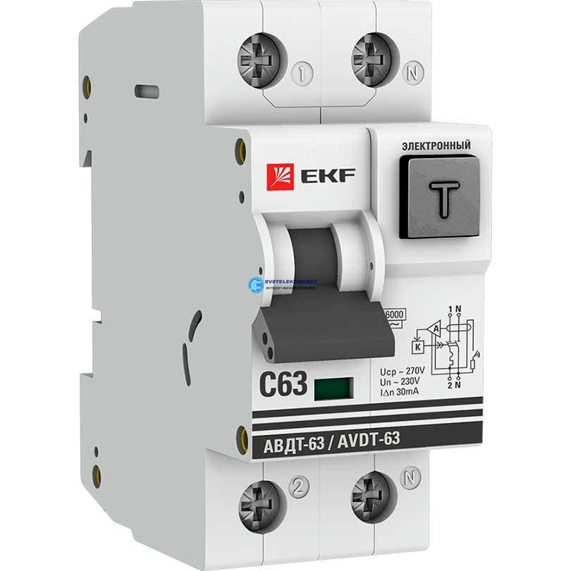 Дифференциальный автомат АВДТ-63 63А/ 30мА (хар-ка C, электронный тип АС) 6кА PROxima, код DA63-63-30e-AC, производитель EKF