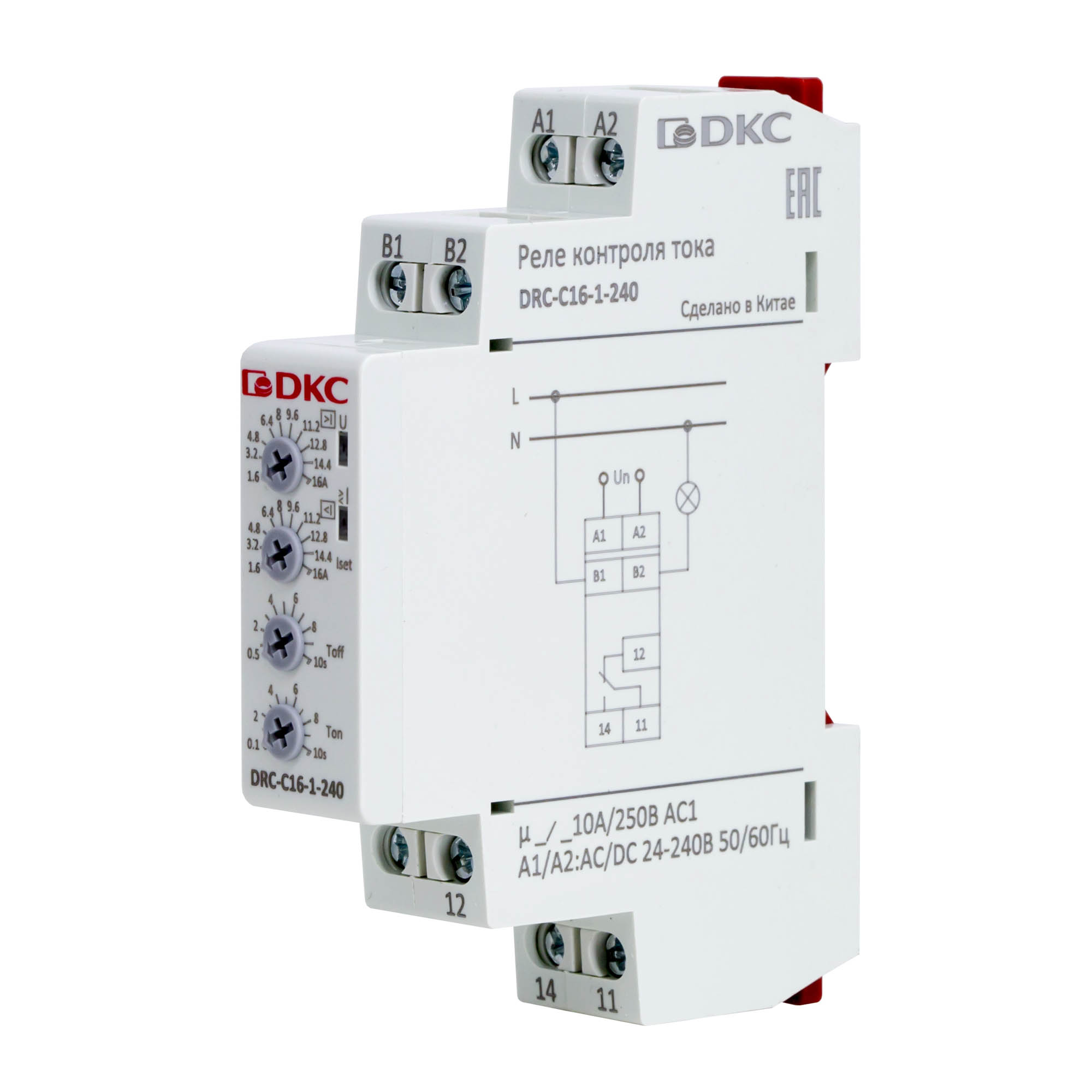 Реле контроля тока, 1.6-16А, конфигурация контакта 1CO, 24-240 AC/DC, код DRC-C16-1-240, производитель DKC