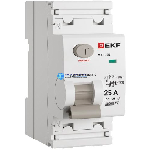 Выключатель дифференциального тока ВД-100N 2P 25А 100мА тип эл-мех 6кА, код E1026MA25100, производитель EKF