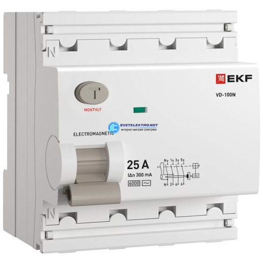 Выключатель дифференциального тока ВД-100N 4P 25А 300мА тип AC эл-мех 6кА PROXIMA, код E1046M25300, производитель EKF