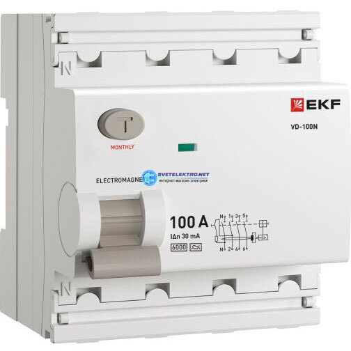Выключатель дифференциального тока ВД-100N 4P 100А 30мА эл-мех 6кА, код E1046MA10030, производитель EKF