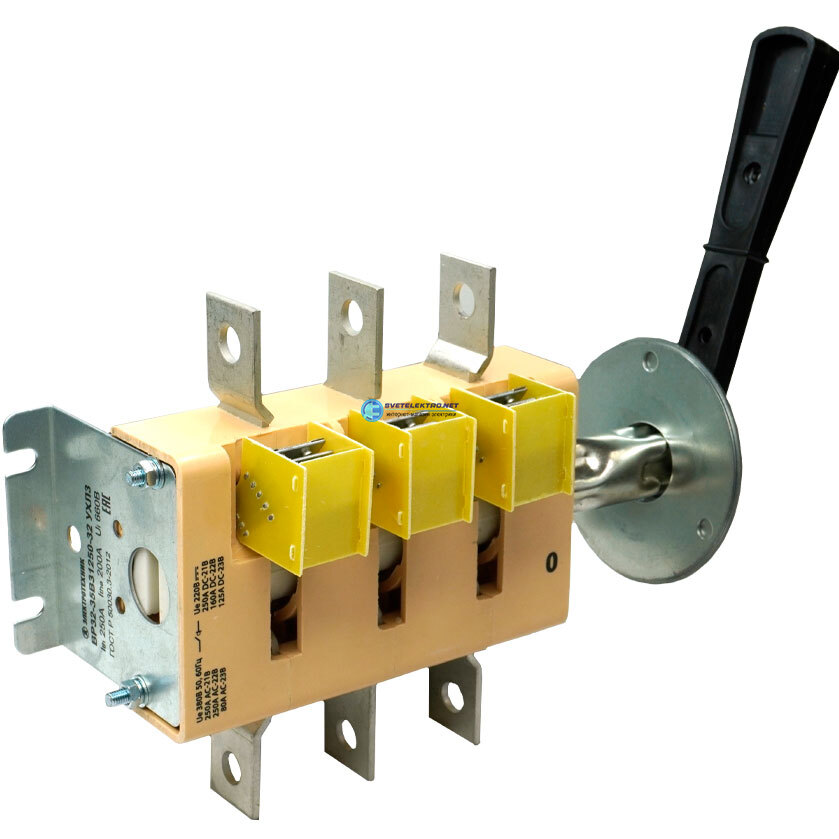 Рубильник ВР32-35В31250-32 УХЛ3 250А съёмная боковая смещённая рукоятка 3-х полюсный на одно направление с дугогасительными камерами IP32, код ET006530, производитель Электротехник