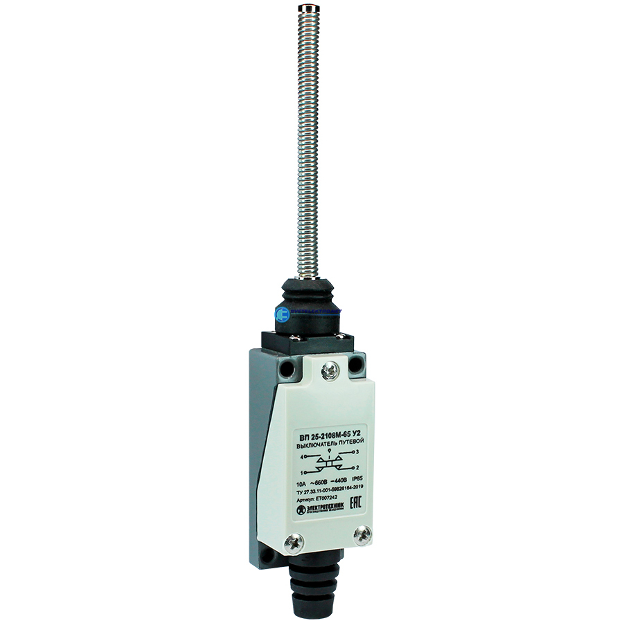 ВП 25-2108М-65 У2, рычаг пружинный, 1з+1р, безинерционный, 21х56 мм, 3А, IP65, выключатель путевой, код ET007242, производитель Электротехник