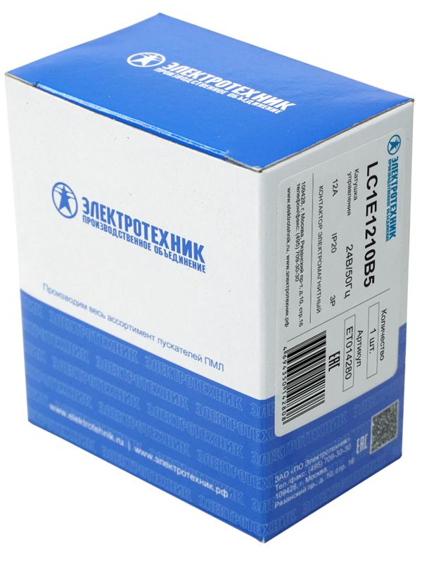 Контактор электромагнитный LC1E1210B5, 3Р, 12А, 1НО, 24В/50Гц,, код ET014280, производитель Электротехник
