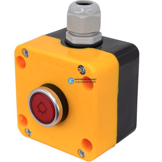 Пост управления ПКУ-22-1W2B-65У1, 1 красный цилиндр с подсветкой 24В AC/DC (НО), IP65 (ЭТ) ET014869 Электротехник