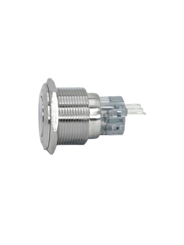Выключатель кнопочный GQ22-L-11/S, металл, 1C1NO1NC, серебристая цилиндрическая кнопка, d22мм, IP65 (ЭТ), код ET020089, производитель Электротехник