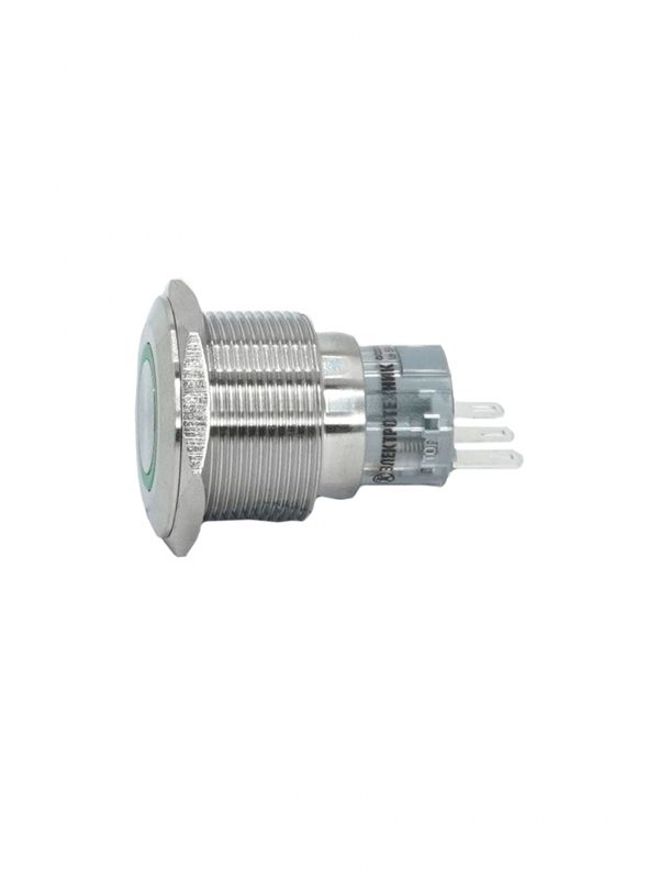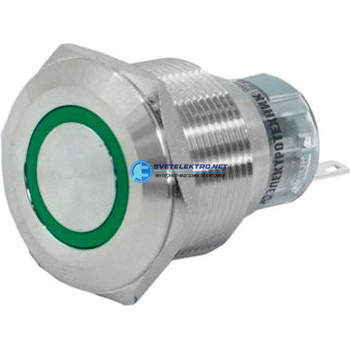 Выключатель кнопочный GQ22-L-11E/G/S, зелёный, металл, 1C1NO1NC, цилиндр, d22мм, IP65 (ЭТ), код ET020090, производитель Электротехник