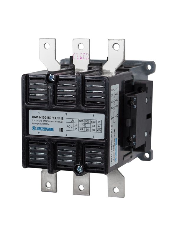 Пускатель электромагнитный ПМ12-100150 УХЛ4 В, 110В/50Гц, 2з+2р, 100А, нереверсивный, без реле, IP20, код ET510954, производитель Электротехник