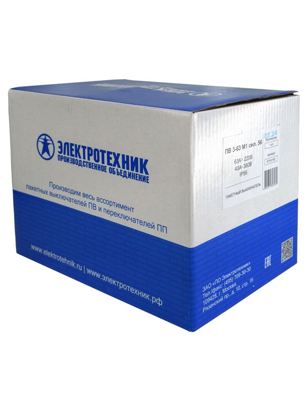 Выключатель пакетный ВП3-63 М1, до 63А, силум.кор, IP56, код ET512192, производитель Электротехник