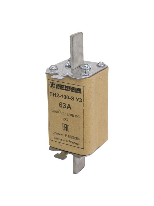 Плавкая вставка ПН2-100-Э У3 на 63А, стальные ножи (ЭТ), код ET522866, производитель Электротехник
