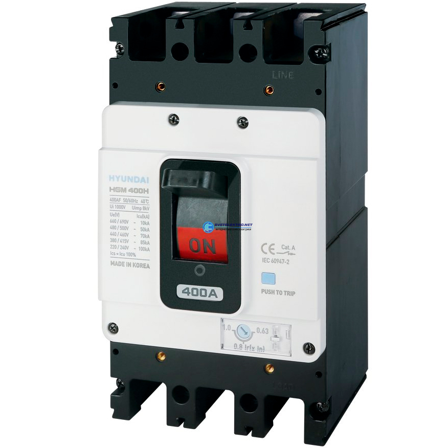 Выключатель автоматический в литом корпусе типа HGM, типоразмера 100AF, (16А, 26кА, полюса, регулируемый термомагнитный, код HGM100H3PT4S0000C00016F, производитель Hyundai