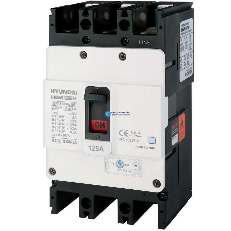 Автоматический выключатель в литом корпусе типа HGM, типоразмера 125AF, (6А, 55кА, полюса, регулируемый термомагнитный, код HGM125L3PT4S0000C00063F, производитель Hyundai