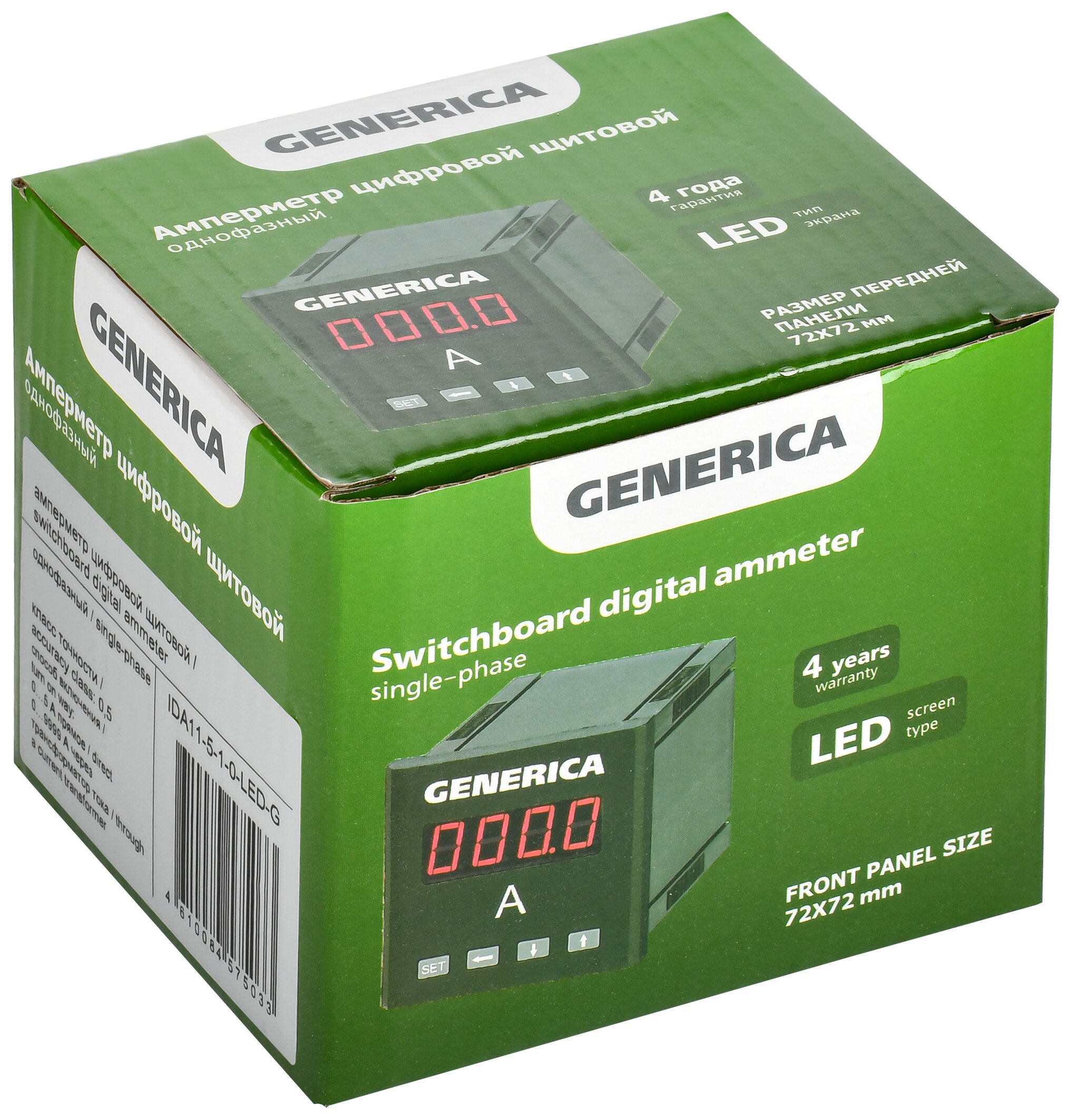 Амперметр цифровой щитовой однофазный 72х72мм, код IDA11-5-1-0-LED-G, производитель Generica