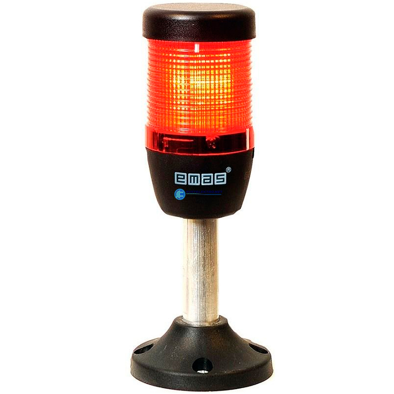Сигнальная колонна 50 мм, одноцветная (красный цвет), светодиод LED, алюм. патрубок 100 мм с основанием, 24В AC/DC, IP40, код IK51L024XM03, производитель EMAS