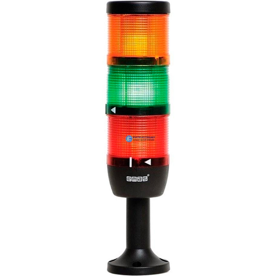 Сигнальная колонна 70 мм, цвета (красный, зелёный, жёлтый), стробоскоп FLESH, пласт. патрубок 100 мм с основанием, 220В AC, IP40, код IK73F220XM01, производитель EMAS