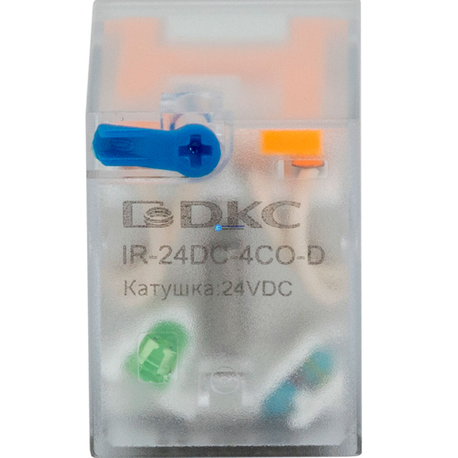 Реле миниатюрное промышленное общего назначения, 4CO, ком. ток 6А, AgSnO?, напряжение 110V DC, опция: тест-кнопка+светодиод+защитный диод, код IR-110DC-4CO-D, производитель DKC