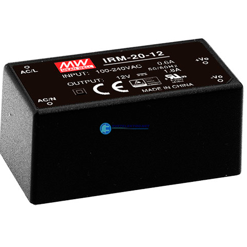 Блок питания AC-DC, 21 Вт, вход 85-264В AC 47-440 Гц, 120-370B DC, выход 15В,1.4А, в корпусе на плату, код IRM-20-15, производитель Mean Well