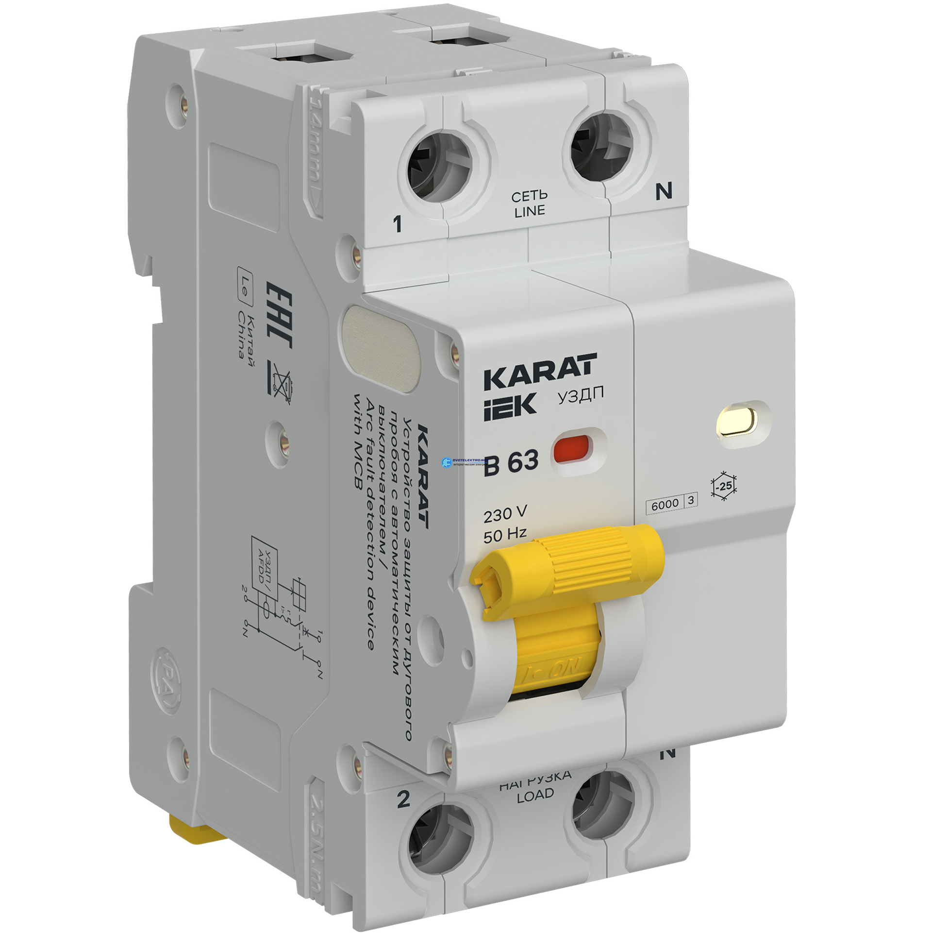 Устройство защиты от дугового пробоя с автоматическим выключателем 1P+N 63А, код KA-DP11-1-063-B, производитель IEK