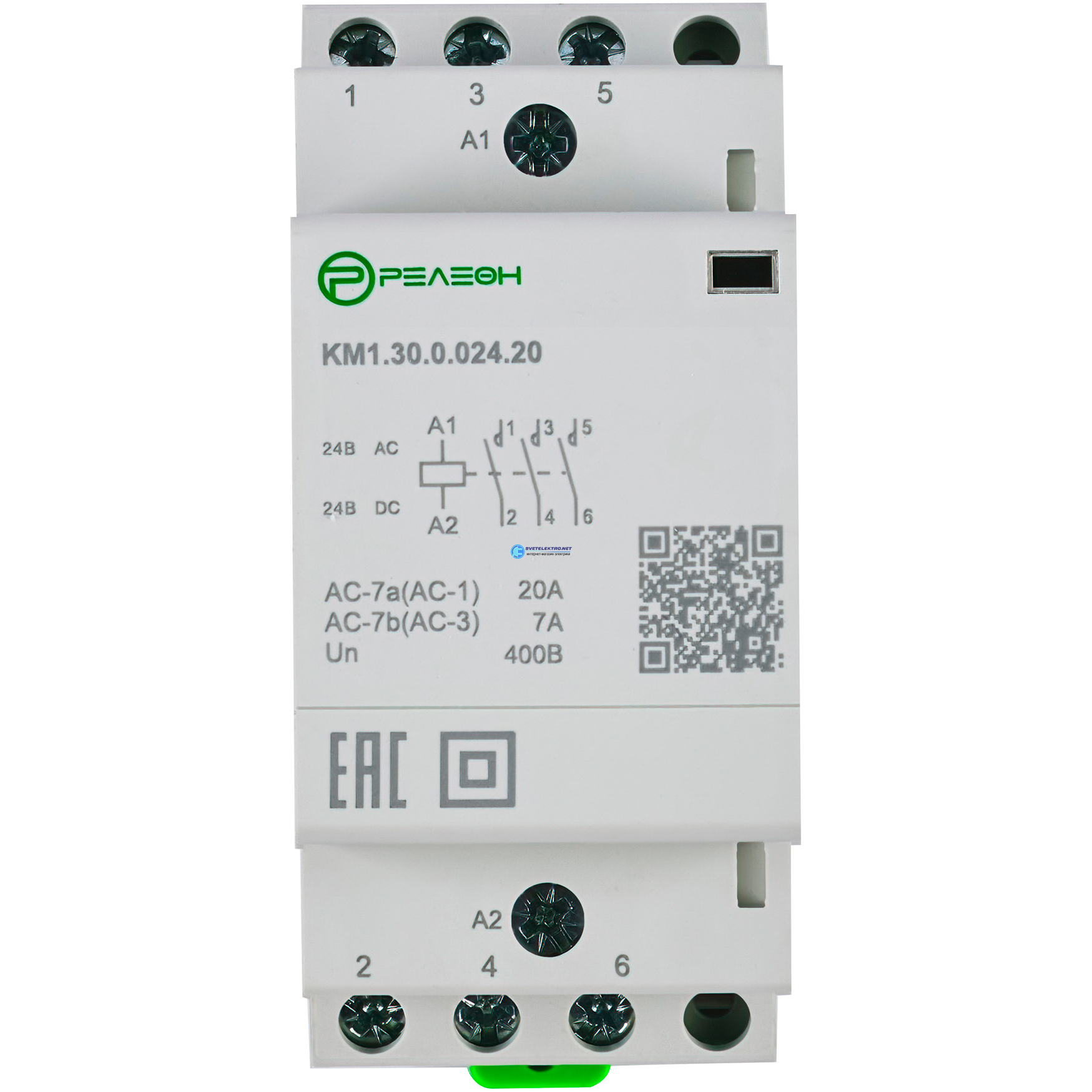 Модульный контактор 3НО контакта 20А (24В AC/DC), код KM130002420, производитель Релеон