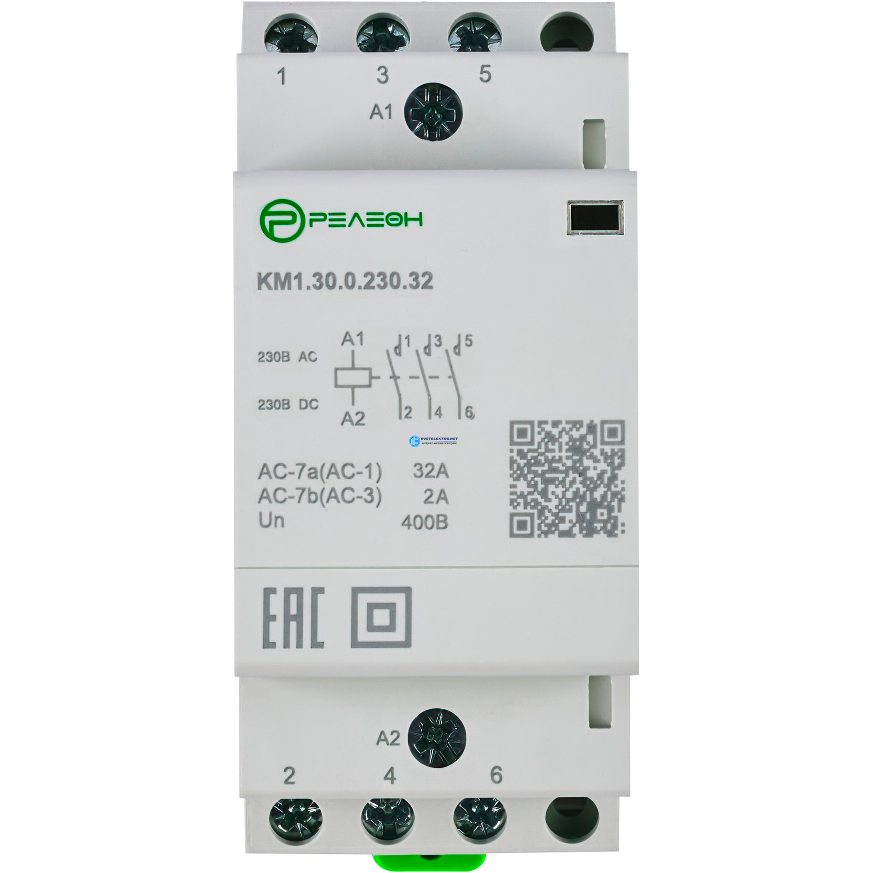 Модульный контактор 3НО контакта 32А (230В AC/DC), код KM130023032, производитель Релеон