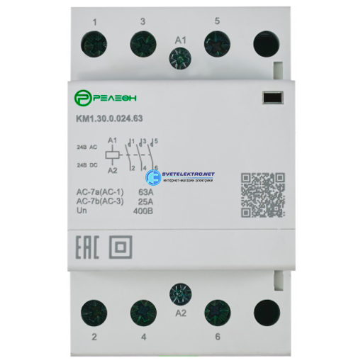 Модульный контактор 3НО+1НЗ контакт 63А (24В AC/DC), код KM131002463, производитель Релеон