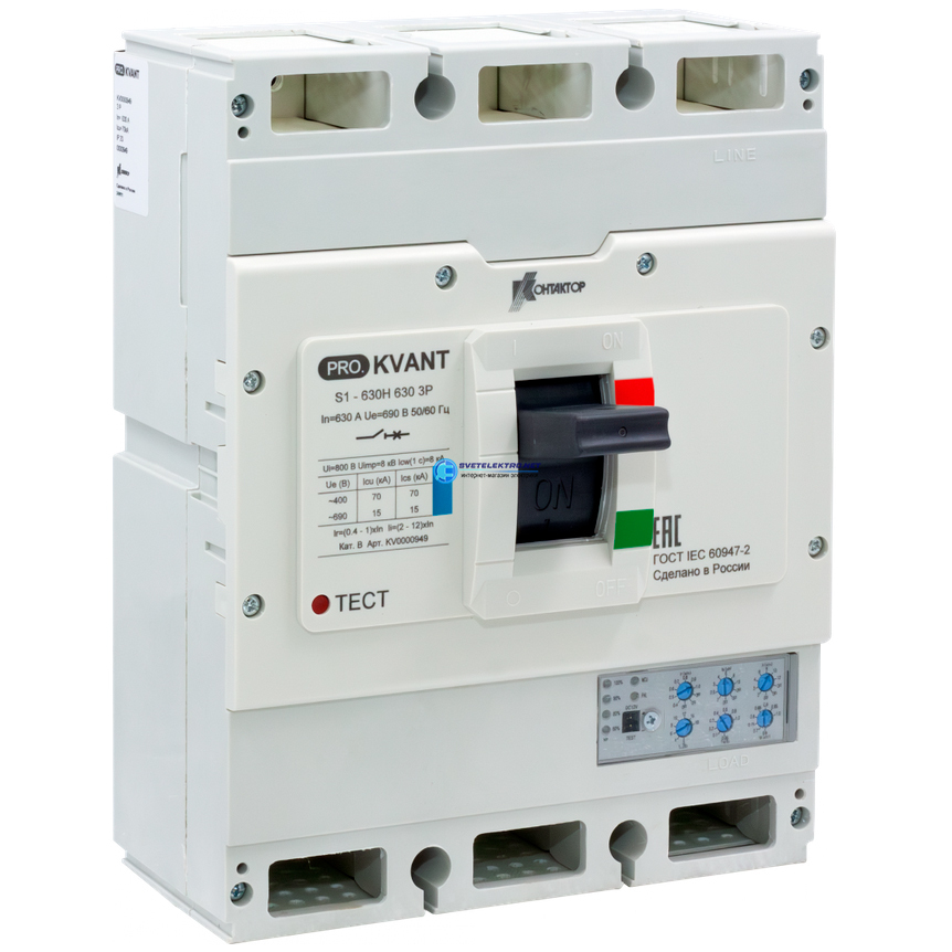 Автоматический выключатель PRO.KVANT S1-630S 3P 630A 50kA, код KV0000948, производитель Контактор