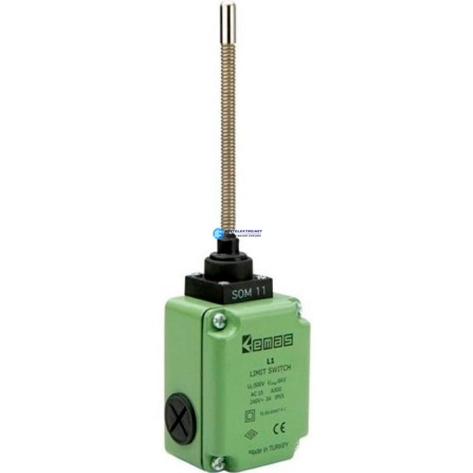 Концевой выключатель, привод металлическая пружина с наконечником (1НЗ+1НО, мгновенное сраб.), серия L1, алюминиевый корпус (240В AC, 3А), IP65, код L1K13SOM102, производитель EMAS