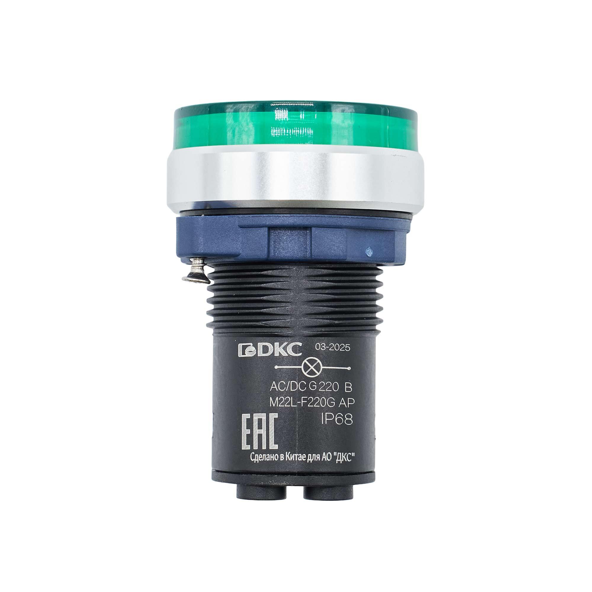 Индикатор сигнальный со встроенным диодом 220В, зеленый, алюминий, зажим Plug-In, код M22L-F220GAP, производитель DKC