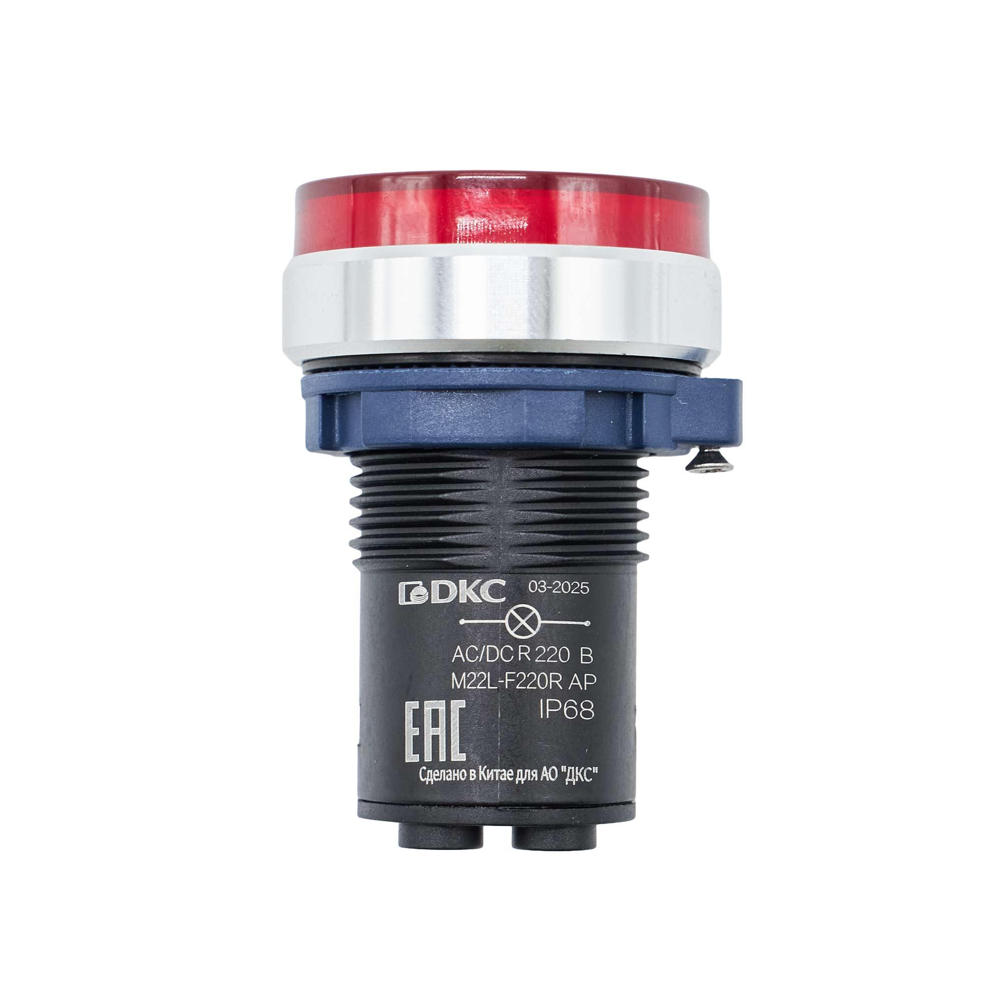 Индикатор сигнальный со встроенным диодом 220В, красный, алюминий, зажим Plug-In, код M22L-F220RAP, производитель DKC