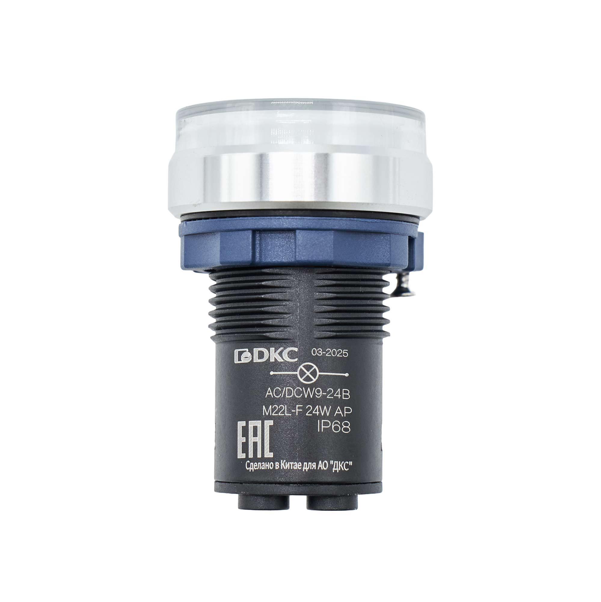 Индикатор сигнальный со встроенным диодом 9-24В, белый, алюминий, зажим Plug-In, код M22L-F24WAP, производитель DKC