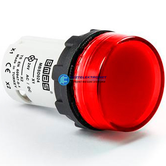 Арматура сигнальная моноблочная плоская линза красный цвет серия MB 24В AC/DC IP54 MBSD024K EMAS
