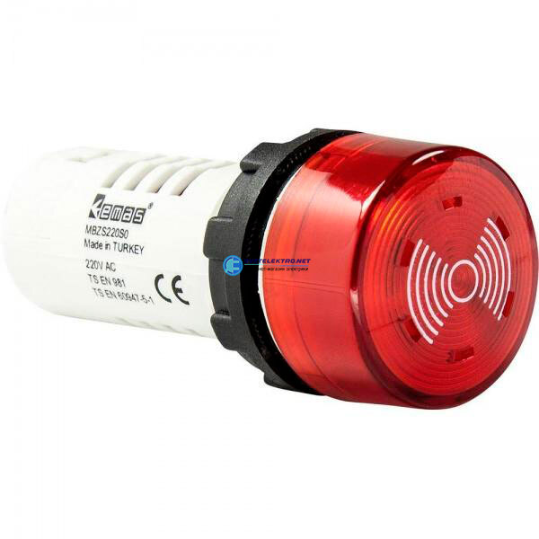 Зуммер моноблочный, красный цвет, с подсветкой светодиодом, 90 db, серия MB, 24В AC/DC, IP50, код MBZS024S, производитель EMAS