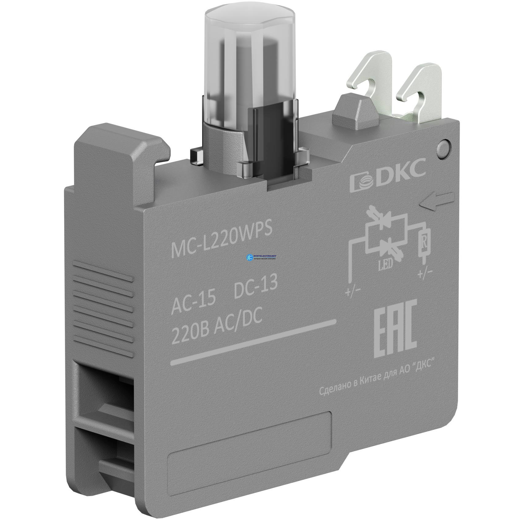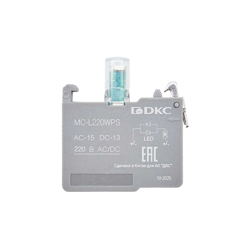 Контактный блок с клеммными зажимами под винт со светодиодом на 220В, белый, код MC-L220WPS, производитель DKC