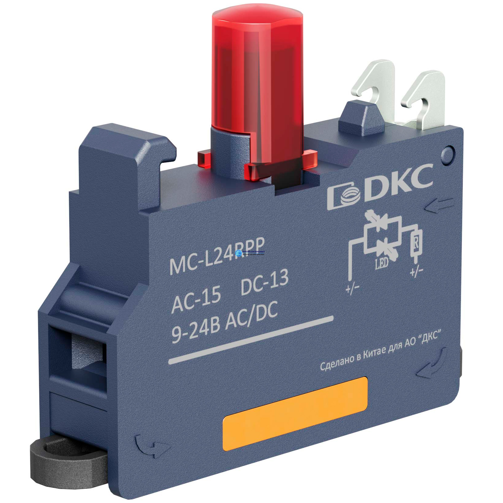 Контактный блок с клеммным безвинтовым зажимом со светодиодом на 9-24В, красный, код MC-L24RPP, производитель DKC