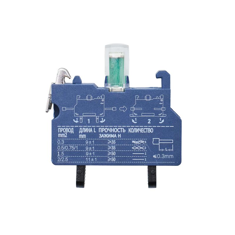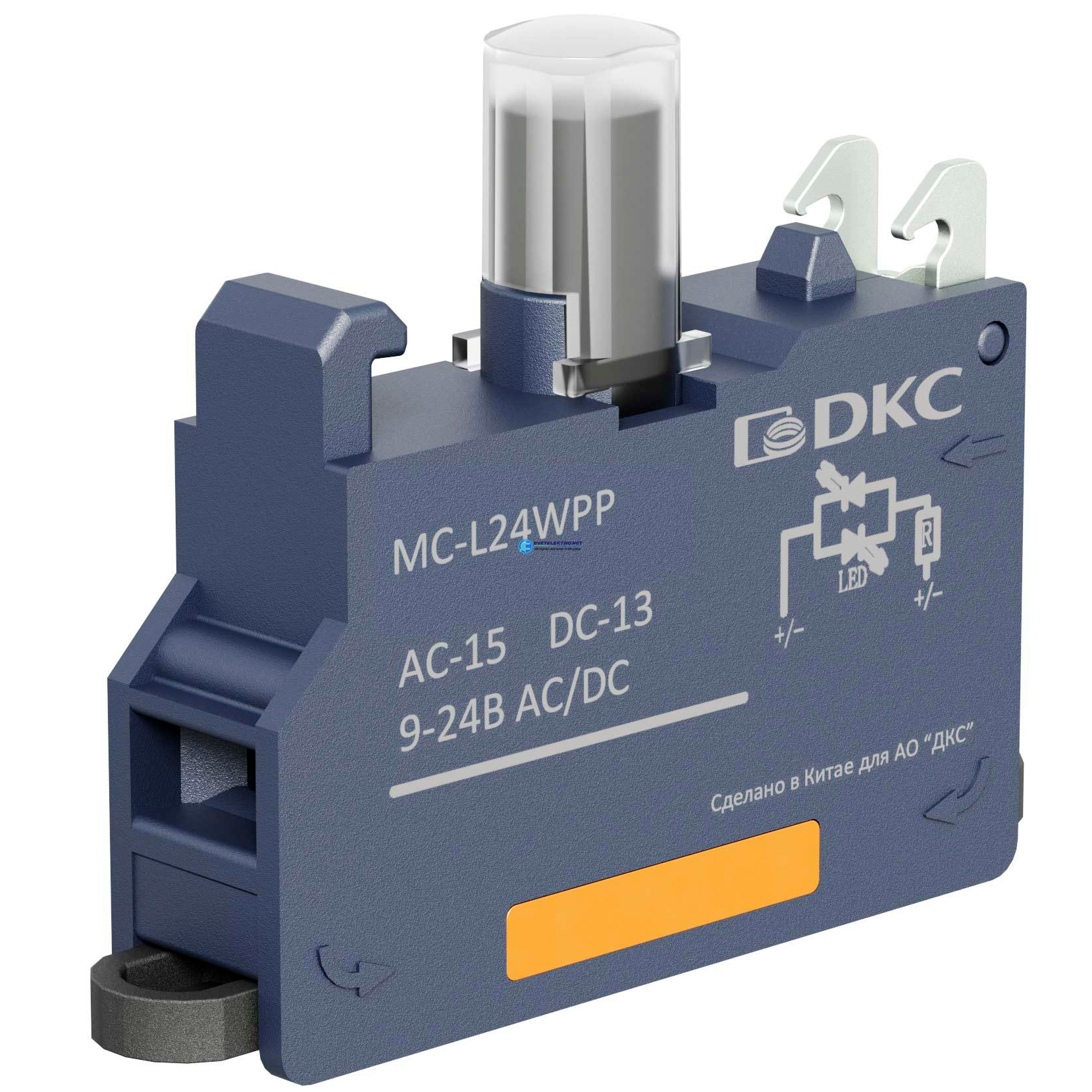 Контактный блок с клеммным безвинтовым зажимом со светодиодом на 9-24В, белый, код MC-L24WPP, производитель DKC
