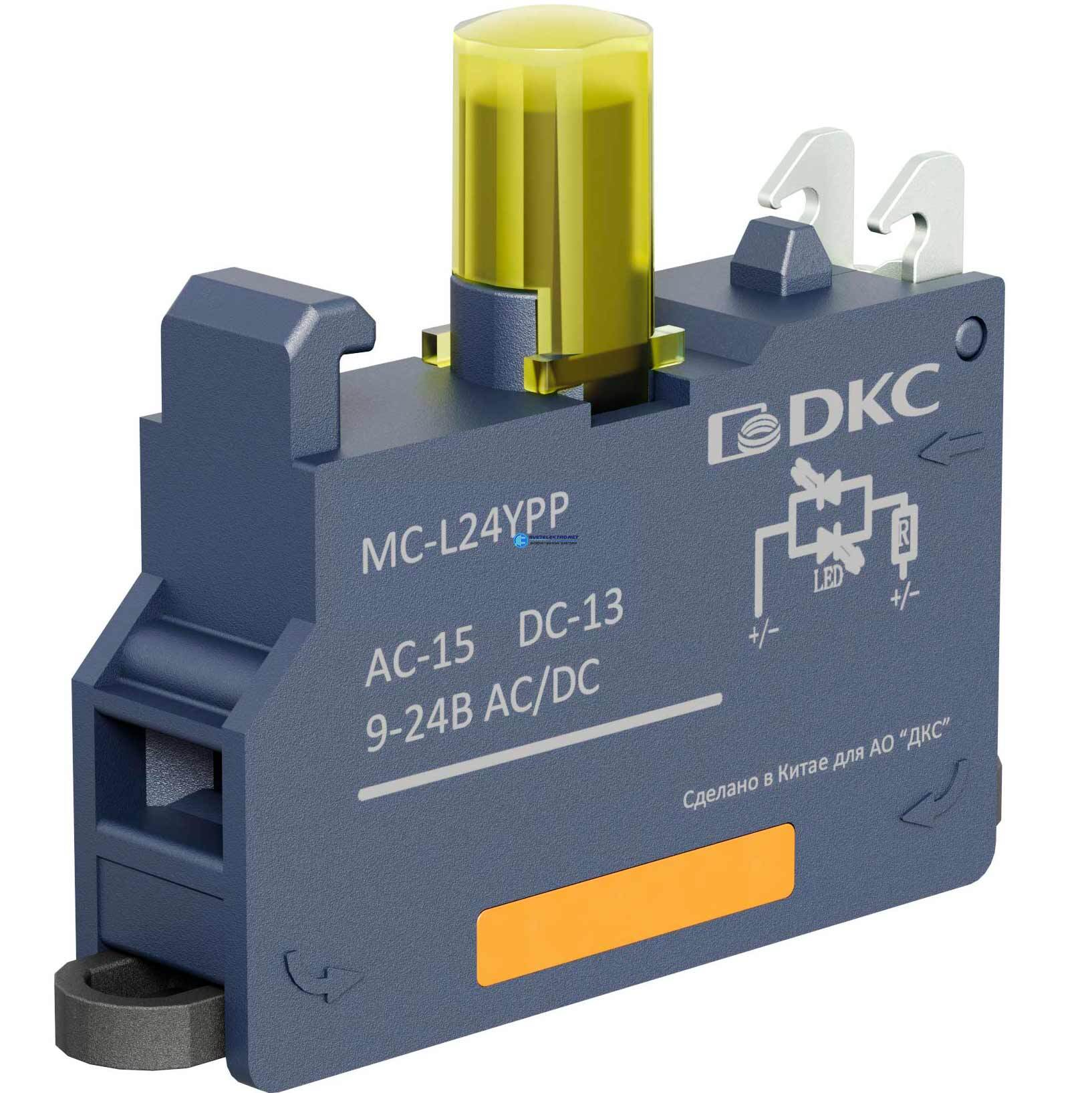 Контактный блок с клеммным безвинтовым зажимом со светодиодом на 9-24В, жёлтый, код MC-L24YPP, производитель DKC