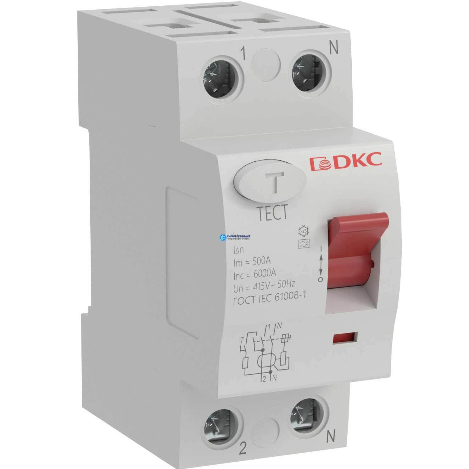 Выключатель дифференциального тока 2п 63А 300мА А, код MDL100-2P4-63-A, производитель DKC